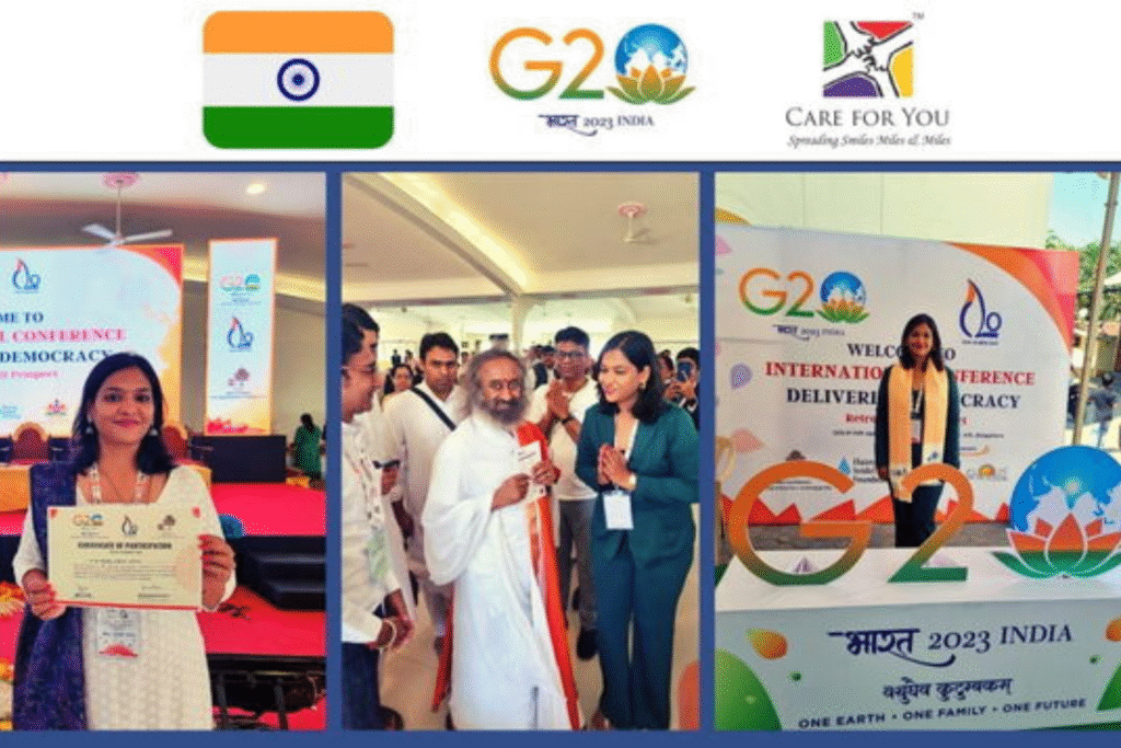 CA Payal Sarda Rathi and Mr. Pawan Gandhi of the Care For You Foundation, were a part of the 150 delegates chosen all over India were invited to attend 2 Day International G20 Conference on ‘Delivering Democracy – Retrospect and Prospect’ in Bengaluru, India on April 12th and 13th 2023. The conference centered on the strengthening of democracy in the future. While there, they had a chance to seek guidance and blessings from Sri Ravi Shankar, the renowned Indian yoga guru and spiritual leader, who founded The Art of Living Foundation. This encounter was a meaningful and enlightening experience for her, as she was able to converse with a globally recognized advocate of peace and humanitarian principles. During the closing ceremony, the guest of honor, Mrs. Manisha Biraris Dy Commissioner of WNCD Maharashtra – delivered a speech commending all the participants for their diligent efforts and commitment.Special recognition was given to IAS Rahul Dwivedi from RECPDCL for graciously donating pictorial books to all the children who took part in the GK contest.The event’s success has motivated and inspired many children to pursue their academic and personal goals with passion and enthusiasm.